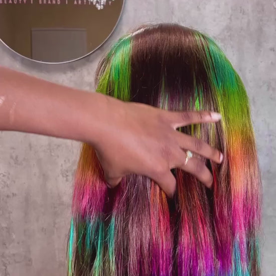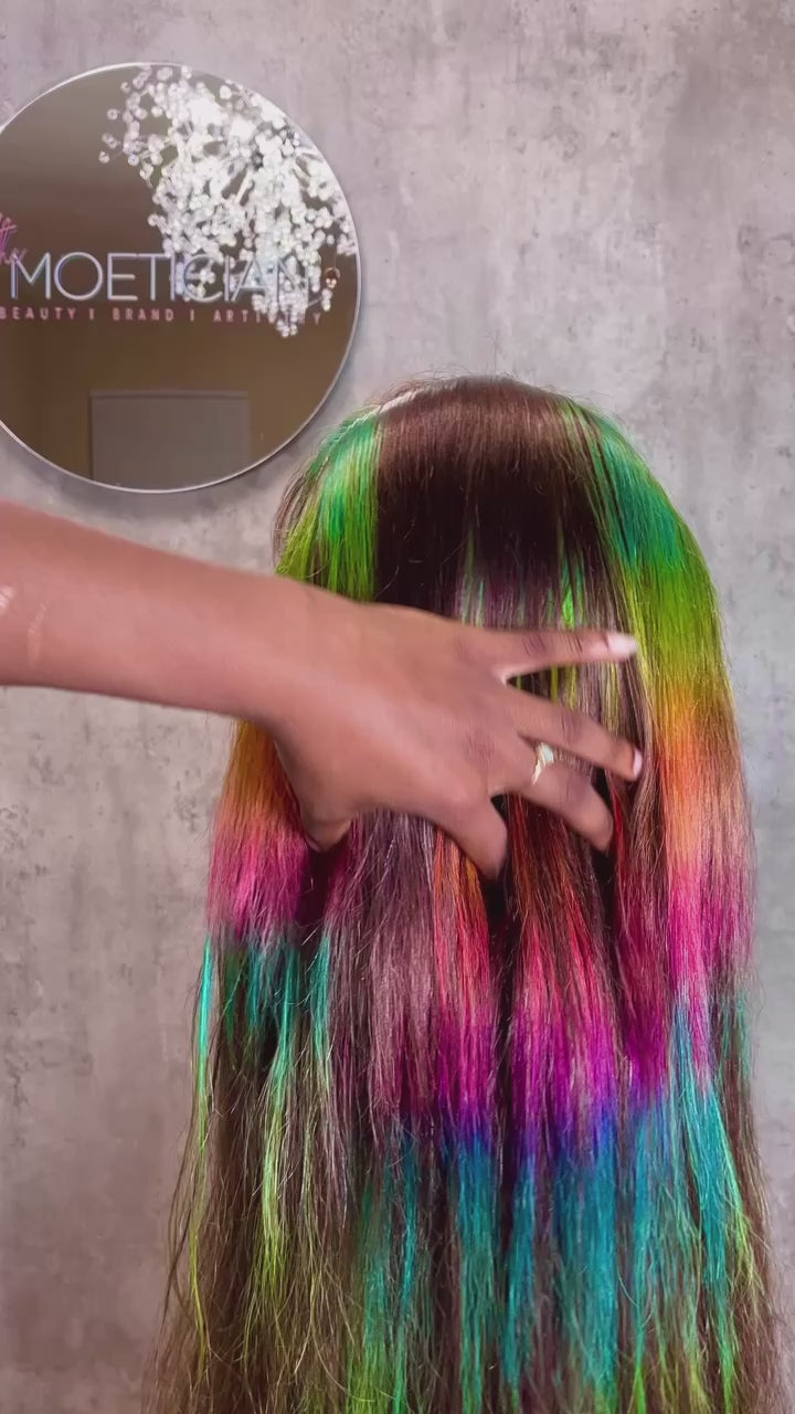 13x6 26inch lace front wig with custom rainbow highlights